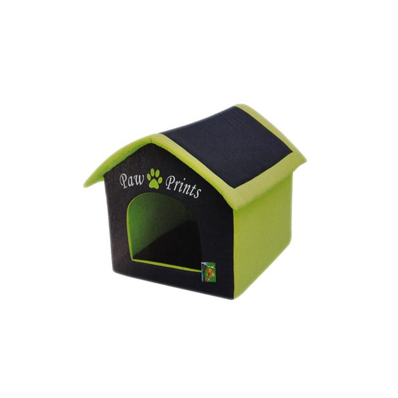Culcus pisici si caini Casuta Textila Paw Verde - Negru 42x39x40 cm