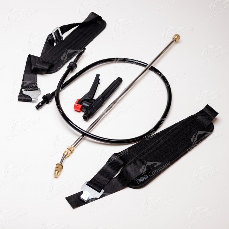 Este compus din tija telescopica metalica cu capat curbat, maner de plastic pentru actionarea pulverizarii, furtun din plastic dur si bretele de schimb din maretial textil.